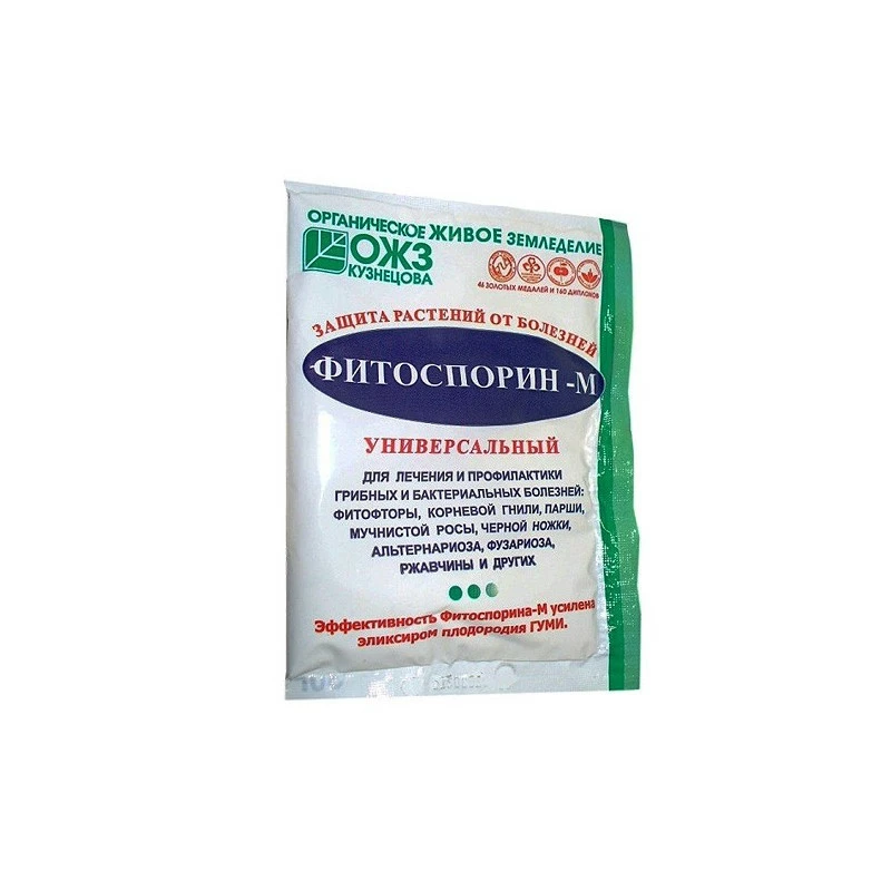 Микробиологический препарат нового поколения, эффективный против грибковых и бактериальных болезней на любых культурах - домашних цветах, укореняемых черенках, в саду на плодовых деревьях и кустарниках, на всех овощных культурах. Действующее вещество: Bacillus subtilis 26 Д, 100 млн. кл./г.