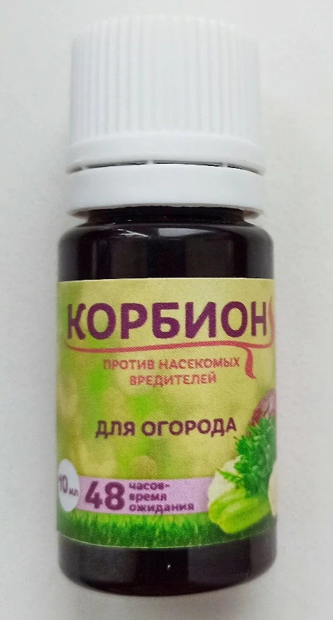 Принцип действия препарата заключается в разрушении желудочно-кишечного тракта насекомого при прямом попадании (опрыскивании), либо при съедании листьев растений обработанных КОРБИОНОМ.