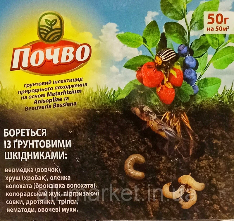 Преимуществом биологически активного препарата является высокая ферментационная энергичность, при помощи которой споры грибов проникают через хитиновый покров непосредственно в кутикулу насекомых. Прорастая изнутри уничтожает вредителей в период 1-3 дня. Заражение и смерть остальных почвенных вредителей происходит благодаря распространению спор гриба внутри грунта.