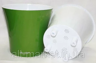 Горшок для цветов Арте состоит из кашпо и вазона вкладки. Растение высаживается в вазон вкладку и вставляется в кашпо.