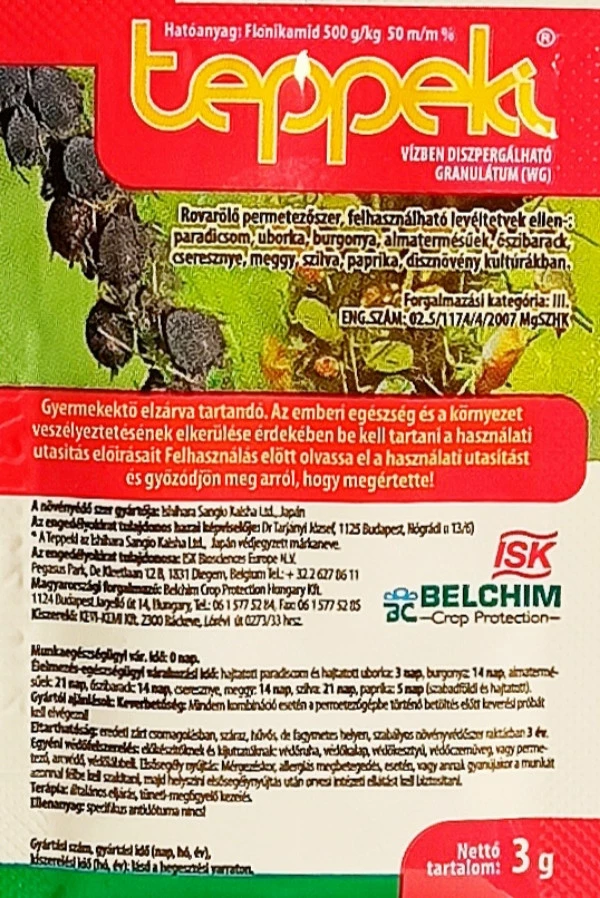 Теппеки® относится к химической группе пиридинкарбоксамиды, по механизму действия — к IRAC группе 9С (модулятор хордотональных органов). Останавливает питание чувствительных насекомых немедленно после применения. Обладает мощной системной и трансламинарной активностью, быстро перемещается по листу защищаемой культуры, обеспечивая надежную и долговременную защиту.
