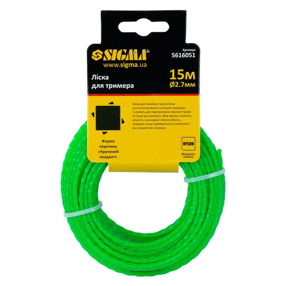 Леска для триммера крученый квадрат Ø 2.7 мм 15 м Sigma