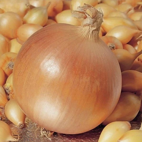 Лук севок Голиат - среднепоздний сорт озимого лука. Период созревания составляет 105-115 дней. Растение очень мощное, с хорошо развитым, крупным листовым аппаратом. Лук Голиат формирует луковицы округло-удлиненной формы, большие по размеру, весом 150-180 г, плотные, с чешуей золотистого цвета. Мякоть белого цвета, сочная с приятным острым вкусом. Сорт без проблем сохраняется до весны, не подвержен гниению.