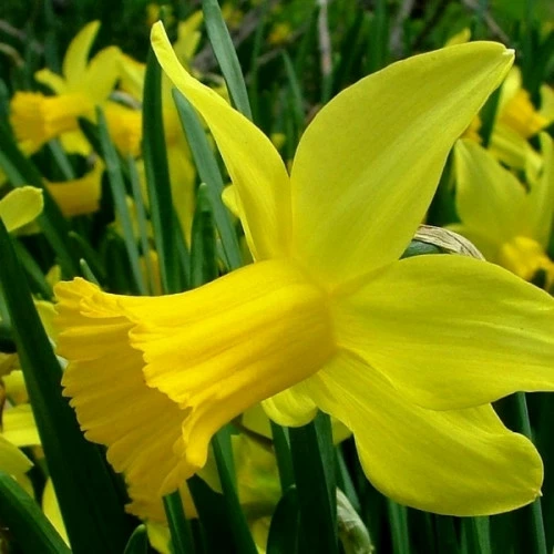Солнечный корончатый нарцисс February Gold отличается тем, что и околоцветник и корона у него желтого цвета. Он создает яркое весеннее настроение и в саду, и дома в букетах. Цветет он около 3-х недель, а сохраняет свежесть после срезки не менее полутора.