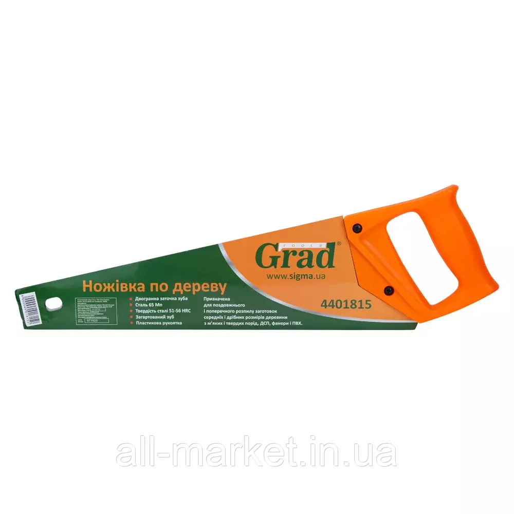 Ножовка по дереву 400мм 3TPI Grad (4401815) предназначена для продольного и поперечного распила заготовок средних и мелких размеров древесины из мягких и твердых пород, ДСП, фанеры и ПВХ.