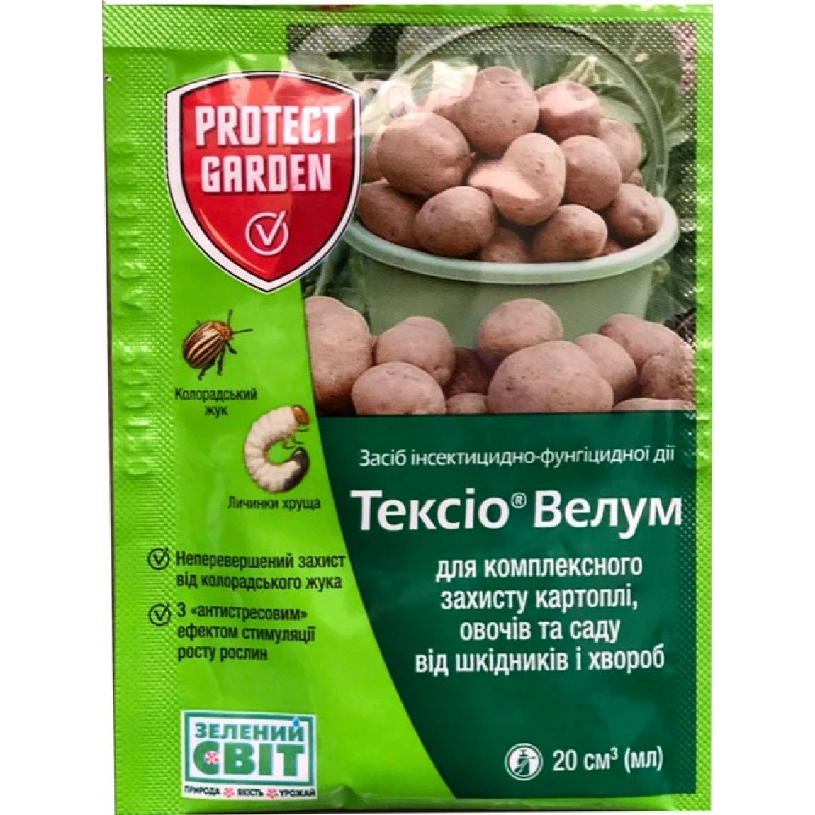 Тексио Велум - препарат для обработки картофеля перед посадкой и замачивания корневой системы овощных культур и саженцев.