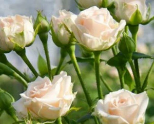 Кремовая спрей-роза Яна на стебле образует густое соцветие. Цветок, диаметром до 6 см, махровый (до 35 лепестков) с легким ароматом. Стебли 40-60 см длиной хорошо подходят для срезки. В срезанном виде стоят до двух недель. Поэтому пользуется популярностью у флористов. Куст с параметрами 60х50см. Цветение непрерывное, длительное.