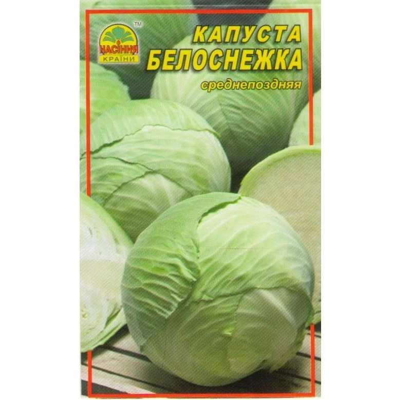 Капуста белоснежка Среднепоздняя, вегетационный период 120-135 дней. Созревание дружное. Кочан округлый, массой до 5 кг, очень плотный в верхней части, на срез белый. Стойкий к растрескиванию. Транспортабельный. Пригоден для зимнего хранения.
