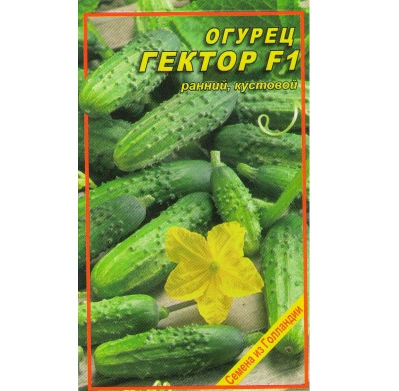 Огурец Гектор F1. Сверхранний кустовой гибрид огурца с преимущественно женским типом цветения. Растение очень компактное, с обильным и дружным плодоношением. Плоды однородные, крупнобугорчатые, белошипые, цилиндрические, с равномерной темно-зеленой окраской. Не желтеют. Отличный вкус, плотная мякоть. Для использования в свежем виде или засолки. Высокая устойчивость к вирусным заболеваниям. Схема посадки 70×50см