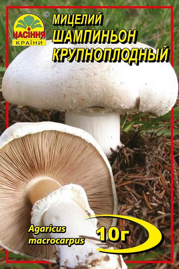 Шампиньон крупноплодный - один из тех грибов, которые несложно вырастить в домашних условиях или на приусадебном участке. Зерновой мицелий предназначен для посадки под садовыми деревьями на приусадебном участке, а также в помещениях. При изготовлении сухого зернового мицелия используется овес, пшеница, рожь и другие злаки. Сначала на зерне проращивается мицелий, затем оно дробится и высушивается по специальной технологии при температуре 23-25 °С. Мицелий переходит в спящее состояние, сохраняя свои свойства. Срок хранения при этом увеличивается до 5 - 7 лет. Следует учесть, что при сушке мицелий в 5 - 6 раз теряет в весе, поэтому 10 г сухого мицелия эквивалентны 50 — 60 г обыкновенного зернового мицелия.