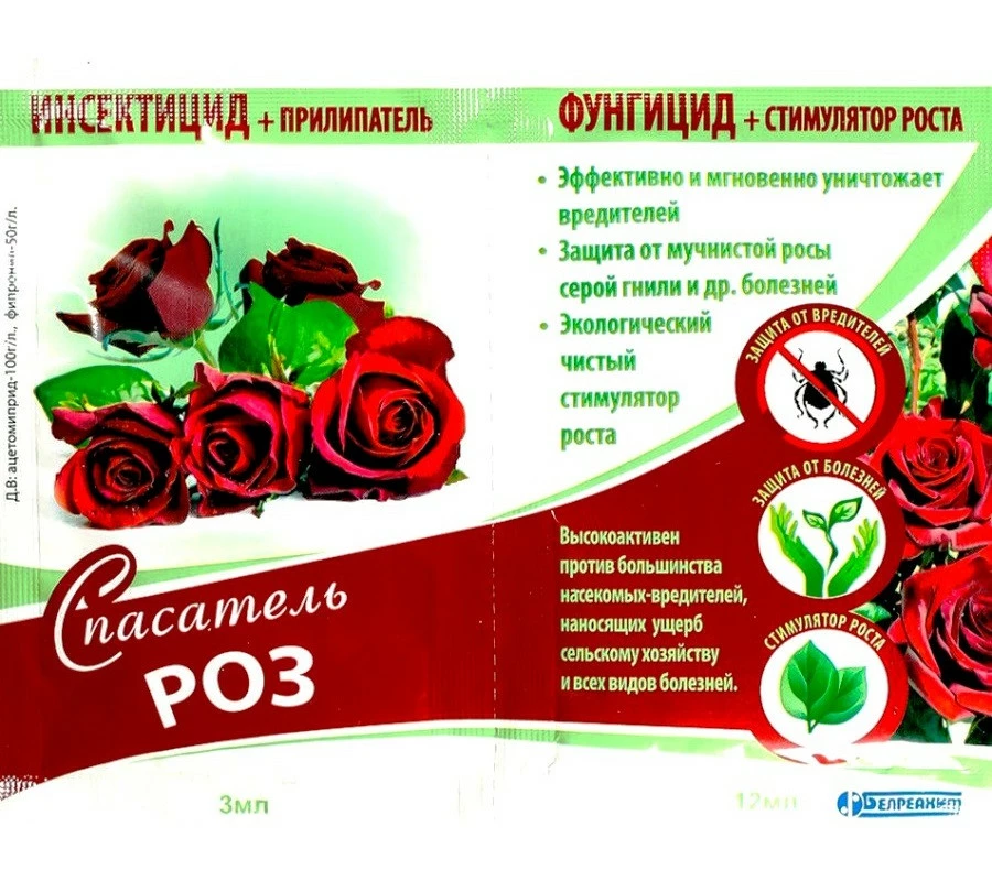 Данный препарат предназначен для уничтожения и защиты роз от насекомых-вредителей и различных грибковых заболеваний. Средство обладает длительный периодом действия благодаря наличию в составе прилипателя, а также не теряет свою работоспособность при повышенных температурах. В состав входит также микроудобрение которое снимет стресс с растений и улучшит качество бутонов и листьев.