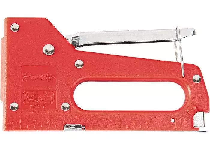 Мебельный степлер изготовлен из ударопрочного ABS-пластика. Используется для крепления тонких материалов к древесине при использовании коротких скоб (41206, 41208).