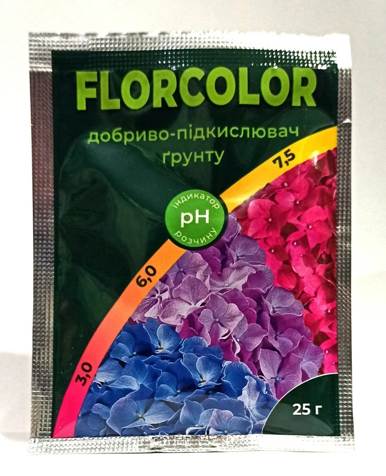 удобрение для корневой подкормки кислолюбивых растений, которое снижает рН почвы. Его использование дает возможность выращивать кислолюбивые растения на почвах с нейтральной или слабощелочной реакцией, поддерживать и повышать кислотность почвы в условиях постоянного полива водой с водопроводов, рек и скважин. В составе удобрения присутствует индикатор, который окрашивает раствор в разные цвета, в зависимости от показателя рН. Благодаря этому, есть возможность создавать раствор необходимой кислотности для конкретного вида растений.
