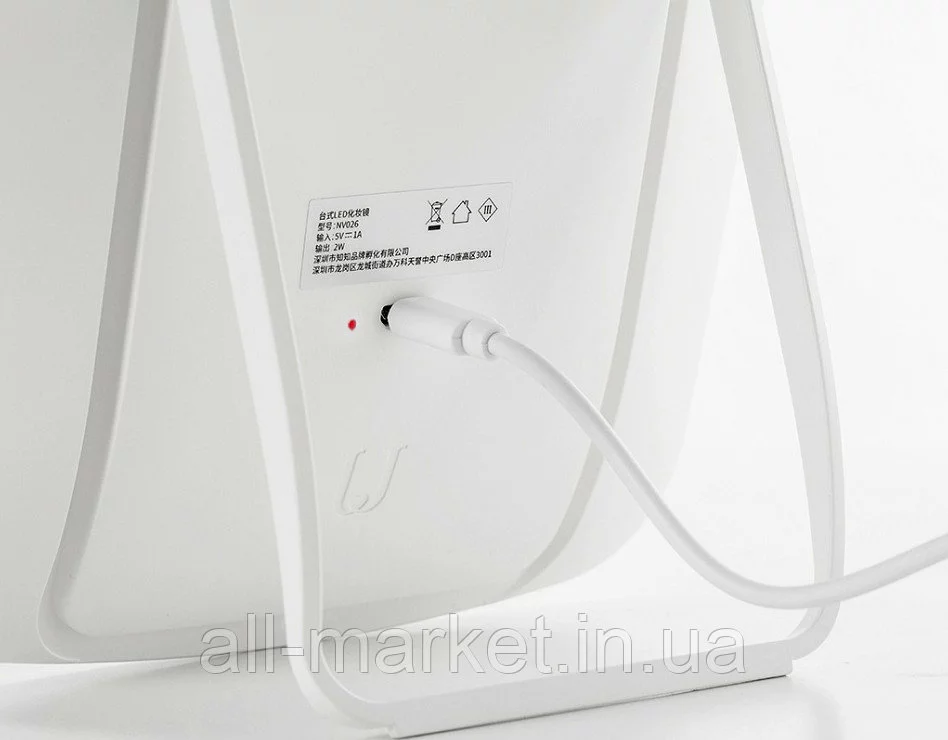 Яркость подсветки плавно регулируется с помощью сенсорной кнопки управления. В качестве источника питания зеркала Jordan Judy выступает встроенная литиевая батарея емкостью 1200 мАч. Длительность работы от одной зарядки - свыше 4-х часов. В комплекте шнур для зарядки с USB-разъемом.